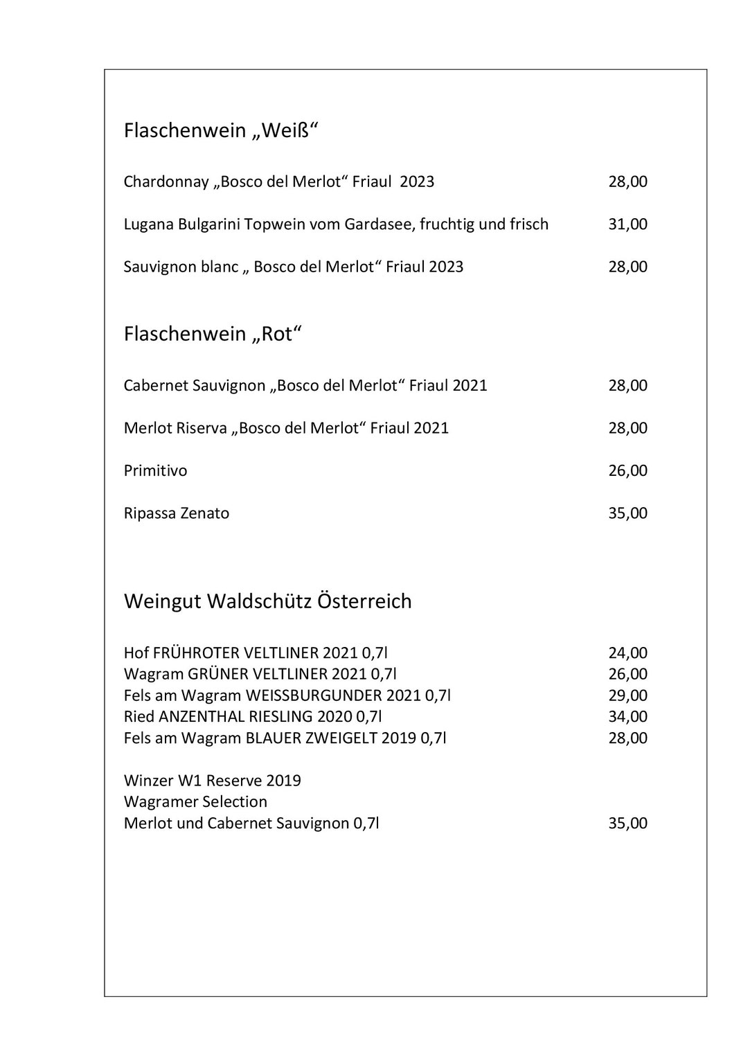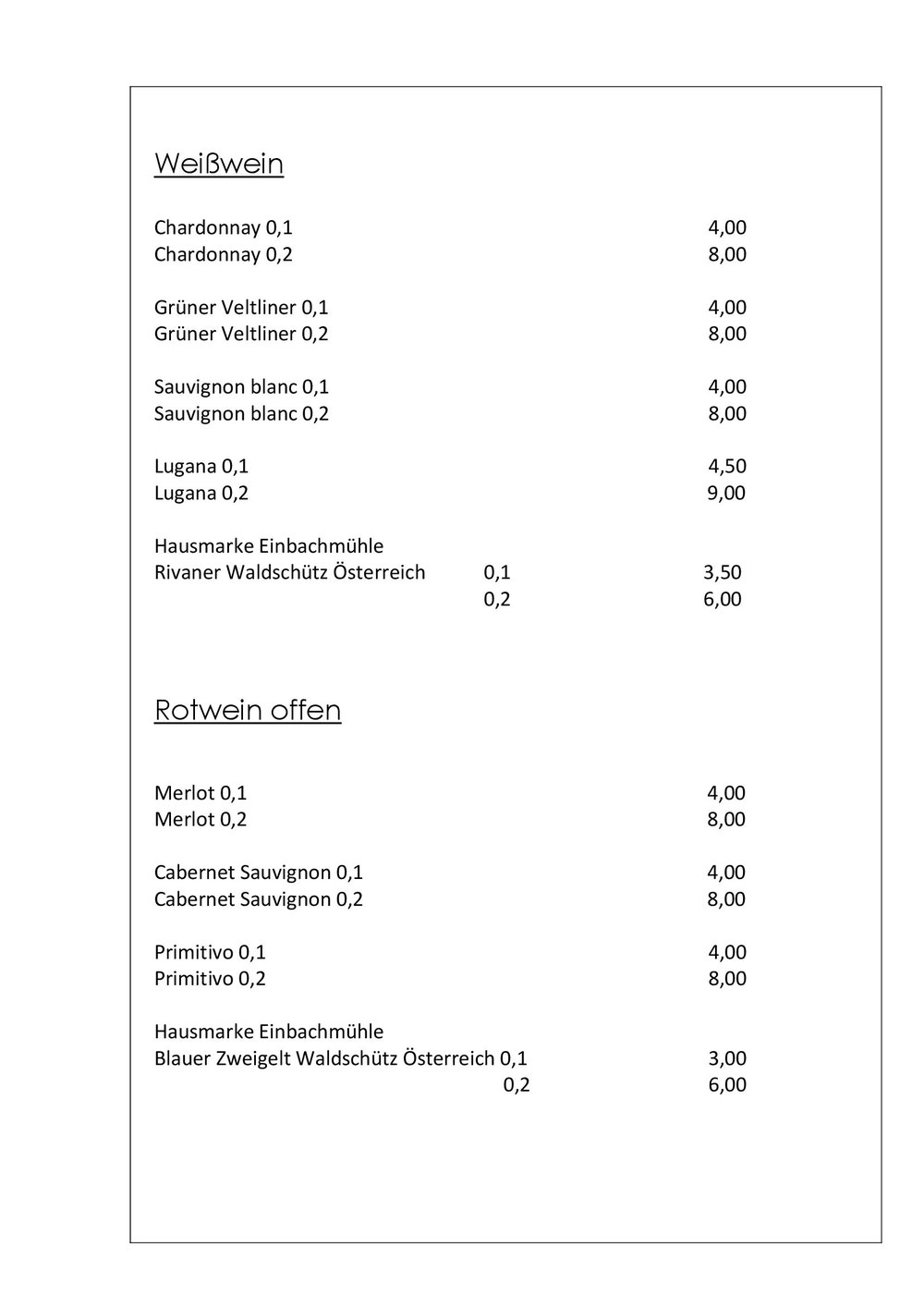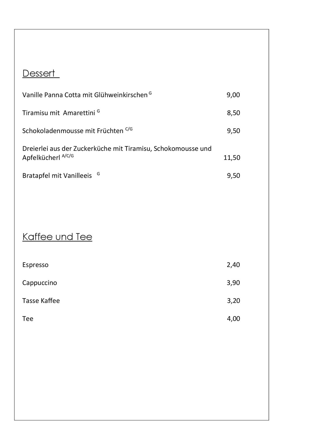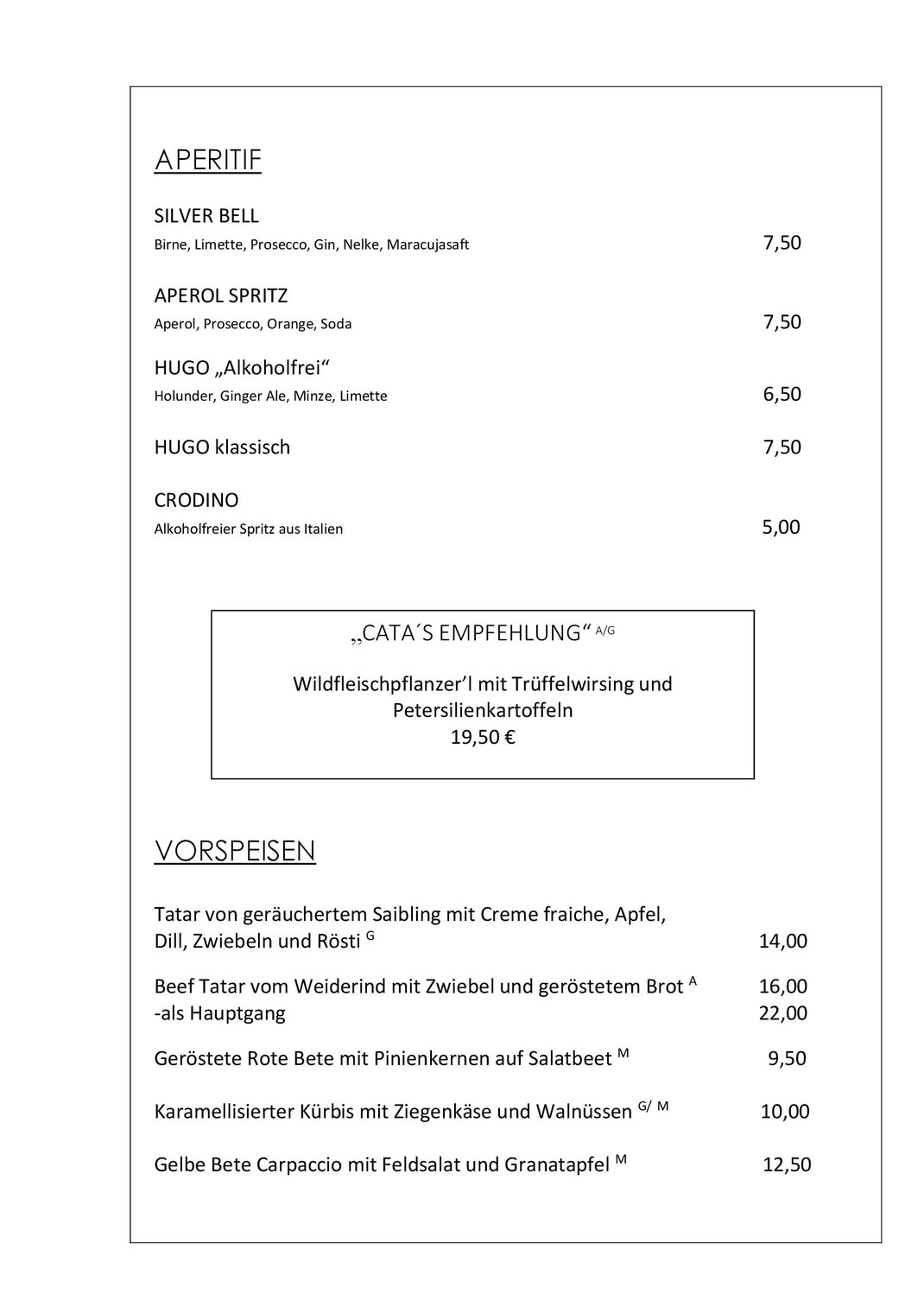 Ab 15.00 zum Abholen, ab 17.00 a la carte